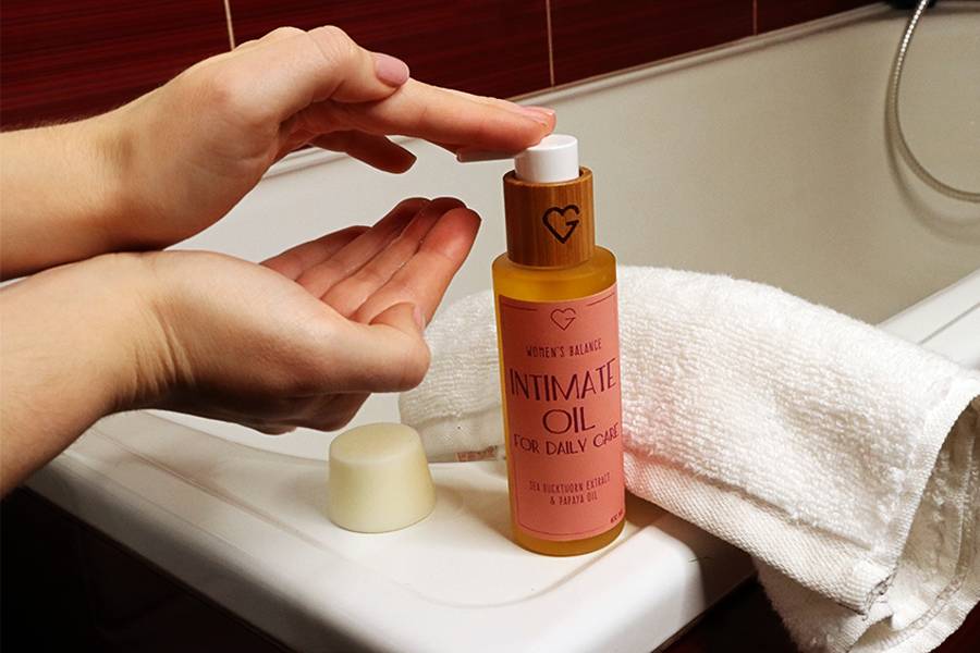 TIP: Pro péči o citlivé prostředí intimních partií vždy používejte kosmetiku k tomu určenou, jako například intimní olej pro každodenní použití. Unikátní složení s obsahem esenciálních olejů šetrně čistí, vyživuje a navíc pomáhá předcházet podráždění nebo rozvoji zánětů a mykóz díky optimálnímu pH 4-4,5.