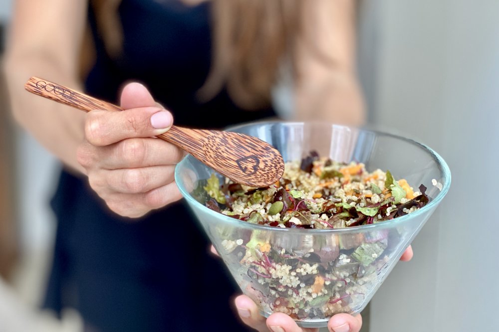 Teplé dny převažují nad těmi chladnými, čerstvá zelenina je dostupnější a my bychom si ji měli začít co nejvíce dopřávat. Saláty se dají připravovat na milion způsobů. Máme pro vás jednoduchý TIP, jak si připravit rychlý a výživný salát s quinoou. Quinoa je velmi bohatá na rostlinné bílkoviny (14 g) a vlákninu, skvěle se tak hodí i do redukčních jídelníčků.