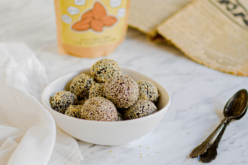 Kuličky s tahini pastou a sezamem poskytují plno bílkovin a energie, jsou ideální přenosnou svačin(k)ou do práce i na cesty, pro děti i dospělé. Vyzkoušejte zdravou variaci oblíbených nepečených kuliček bez bílého cukru a másla!