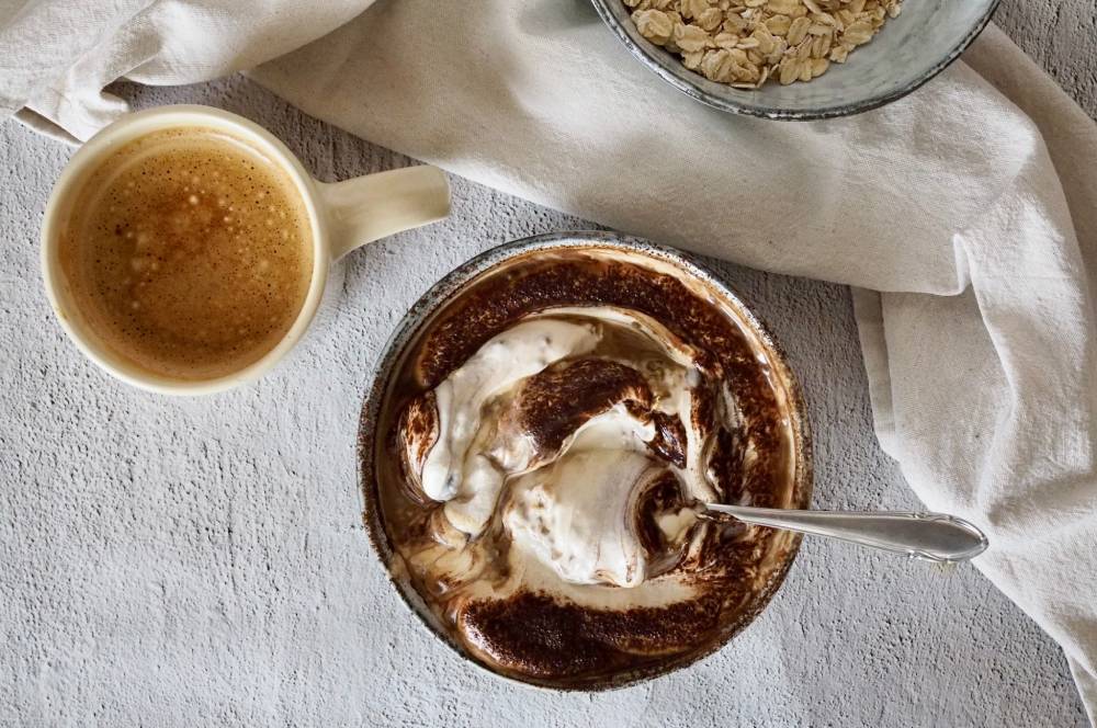 Máte rádi tiramisu? Tak si připravte tuhle jednoduchou snídani - tiramisu vločky. Příprava je rychlá a nenáročná. Vločky nechte odležet v lednici, aby změkly a násákly tekutinu. Jsou pak krásně jemné a spolu s jogurtem tvoří úžasně krémovou konzistenci.