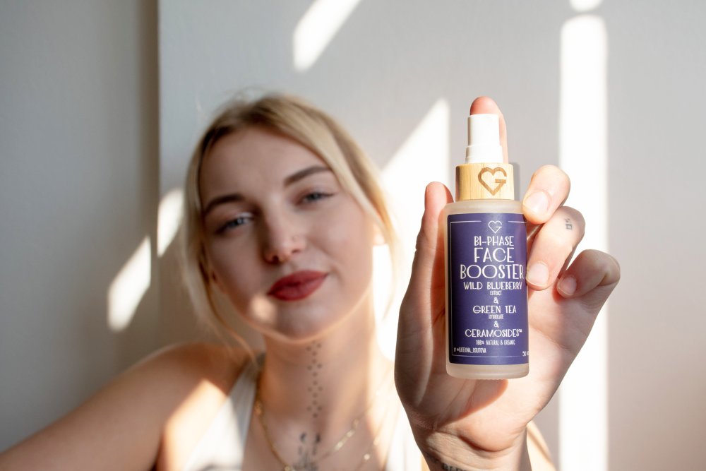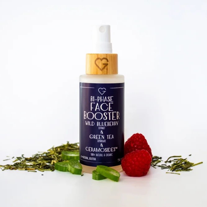 Booster v sobě spojuje sílu rostlinných hydrolátů, přírodních olejů a bioaktivních složek. Hydrolát ze zeleného čaje, malin a extrakt z lesních borůvek jsou bohaté na antioxidanty, které pleť chrání před volnými radikály a každodenním stresem z okolního prostředí. K tomu přispívá i šťáva z aloe vera, která zklidňuje, hydratuje a podporuje regeneraci v hlubších vrstvách pokožky. O výživu a ochranu se starají olivový skvalan a arganový olej – obnovují lipidovou bariéru, chrání před vysušením a dodávají pleti hebkost bez pocitu mastnoty. Komplex látek spolu tvoří ideální základ pro každodenní péči, která udržuje pleť svěží, pružnou a plnou života.